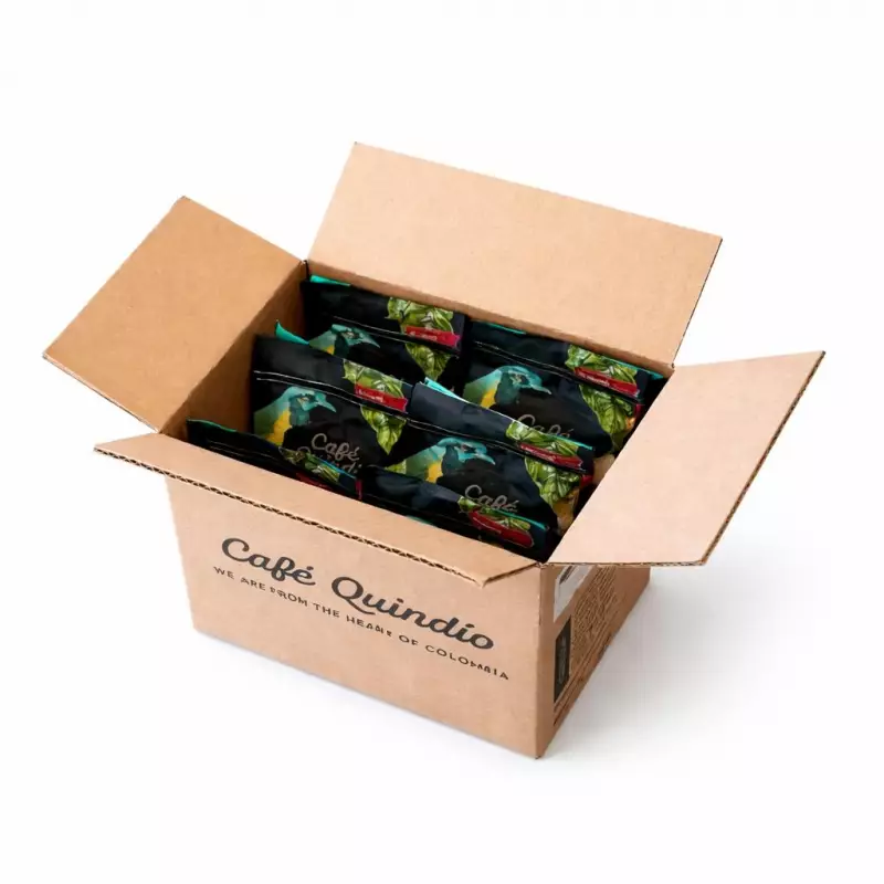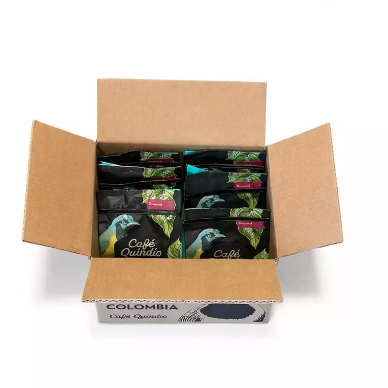 What was born as a dream, is now a reality, one in which over 400 employees work fully committed to offer you the best cup of coffee from local coffee growers roasted and packed at origin. Quindío State, from where our name comes from, is located is the center of Colombia, that´s why we call ourselves the “Coffee from the Heart of Colombia”. This strategic location gives our State the privilege of having flat terrain as well as the majestic Andes Mountains. This difference in altitudes, allows the region to offer different varieties of Arabica coffee, each with its unique characteristics of flavor, notes, body and texture. Gourmet Coffee, also known as our “House Blend”, is a blend of different varieties of coffee harvested at around 6200 feet above sea level (1900 m.a.s.l.), giving it its unique chocolate and panela flavor notes. Its medium roast with its medium-low acidity, offers you a cup of coffee with a high fragrance body and an intense chocolate scent. By buying this coffee, you are contributing to the well-being of many local and small coffee growers in the well-known “Coffee Triangle” of Colombia, where coffee tradition is still the staple of this magical region.