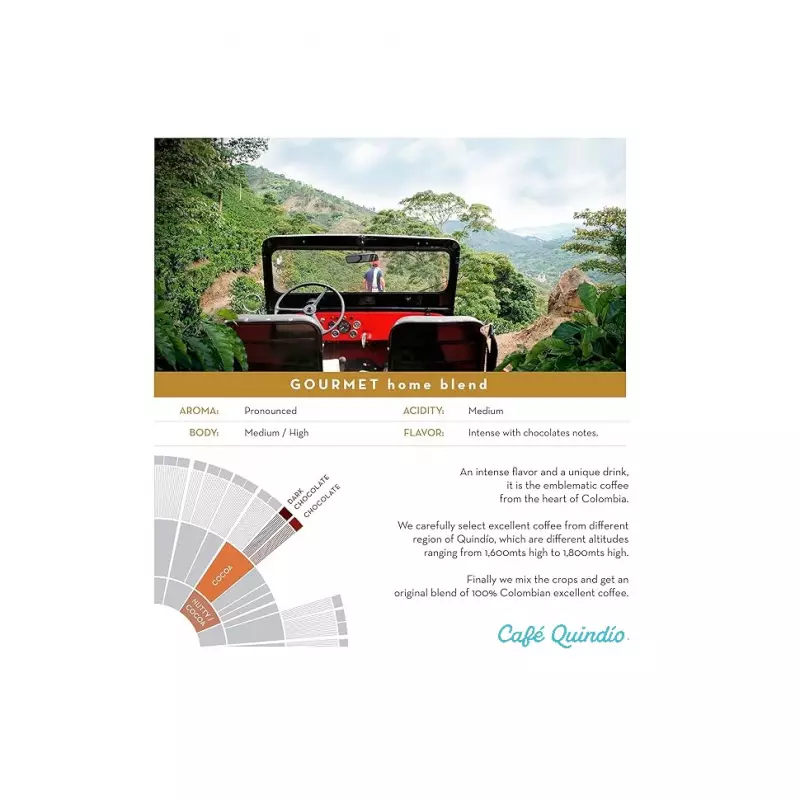 "CAFE QUINDIO is a family owned and women-owned business from Armenia, the capital city of the Quindío State in Colombia. Our story is full of magic and entrepreneurship. Back in the early 1990´s, our founder, Nubia Motta Camargo, found an opportunity in roasting at origin premium coffee beans. Back then, these premium beans were not sold locally and were reserved for the international market. It was a risky move since the local market was not used to drink good quality coffee, but a move that 30 years later, has given CAFE QUINDIO a special place in the heart of all coffee lovers. What was born as a dream, is now a reality, one in which over 400 employees work fully committed to offer you the best cup of coffee from local coffee growers roasted and packed at origin.