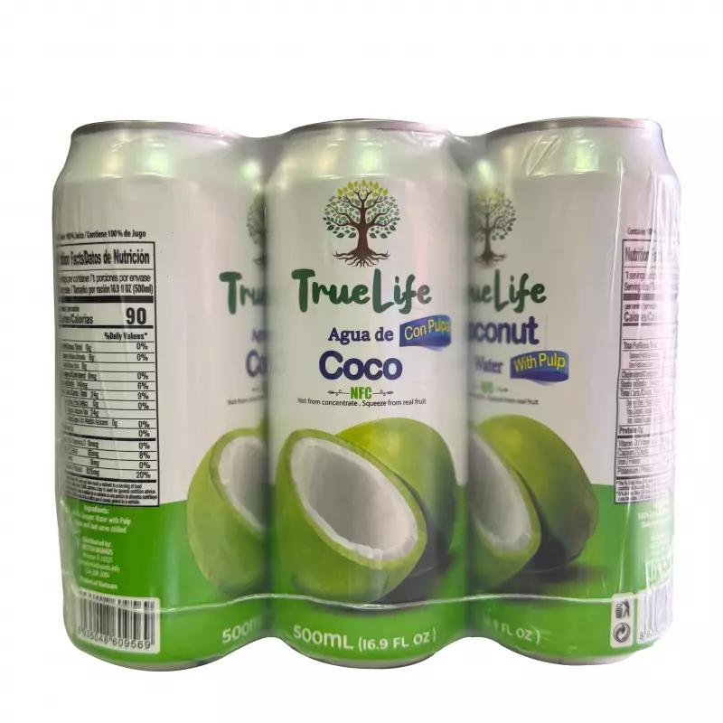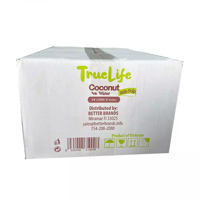 True Life Coconut Water with Pulp – Pure, refreshing coconut water made from real green coconuts. Not from concentrate, with natural pulp for an authentic tropical experience.