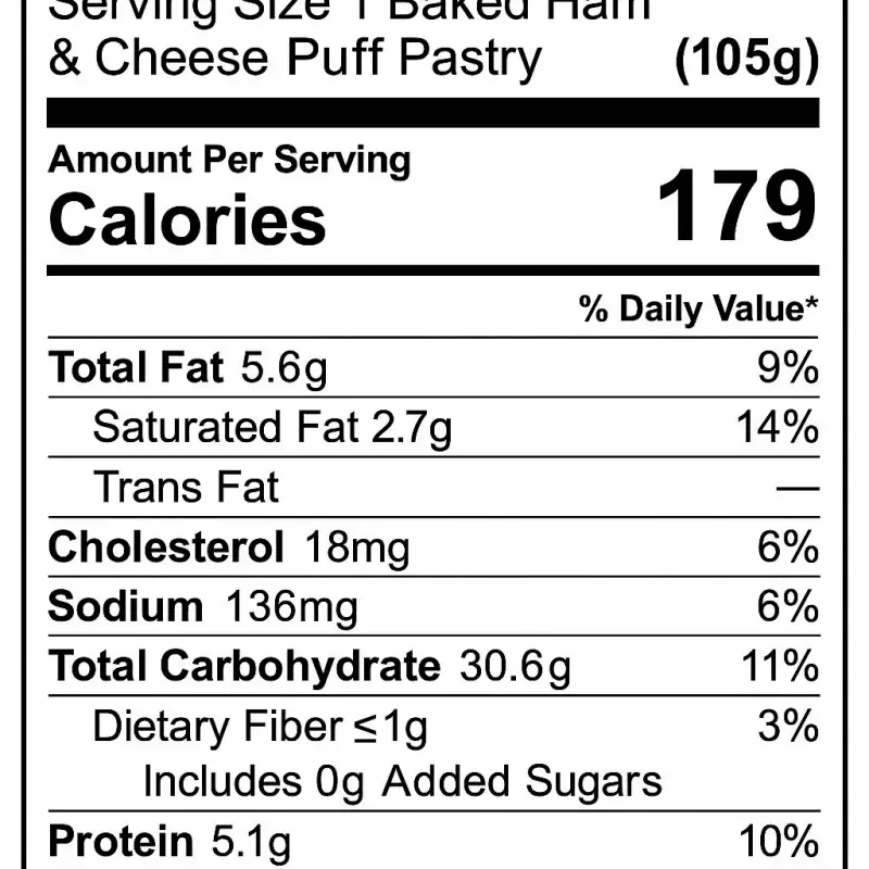 Our Ham & Cheese Puff Pastries are filled with premium cured ham and rich white cheese, wrapped in a buttery, flaky pastry. Made in a USDA and FDA certified facility, they are free from preservatives and additives—offering a perfect balance of flavor and quality in every bite.